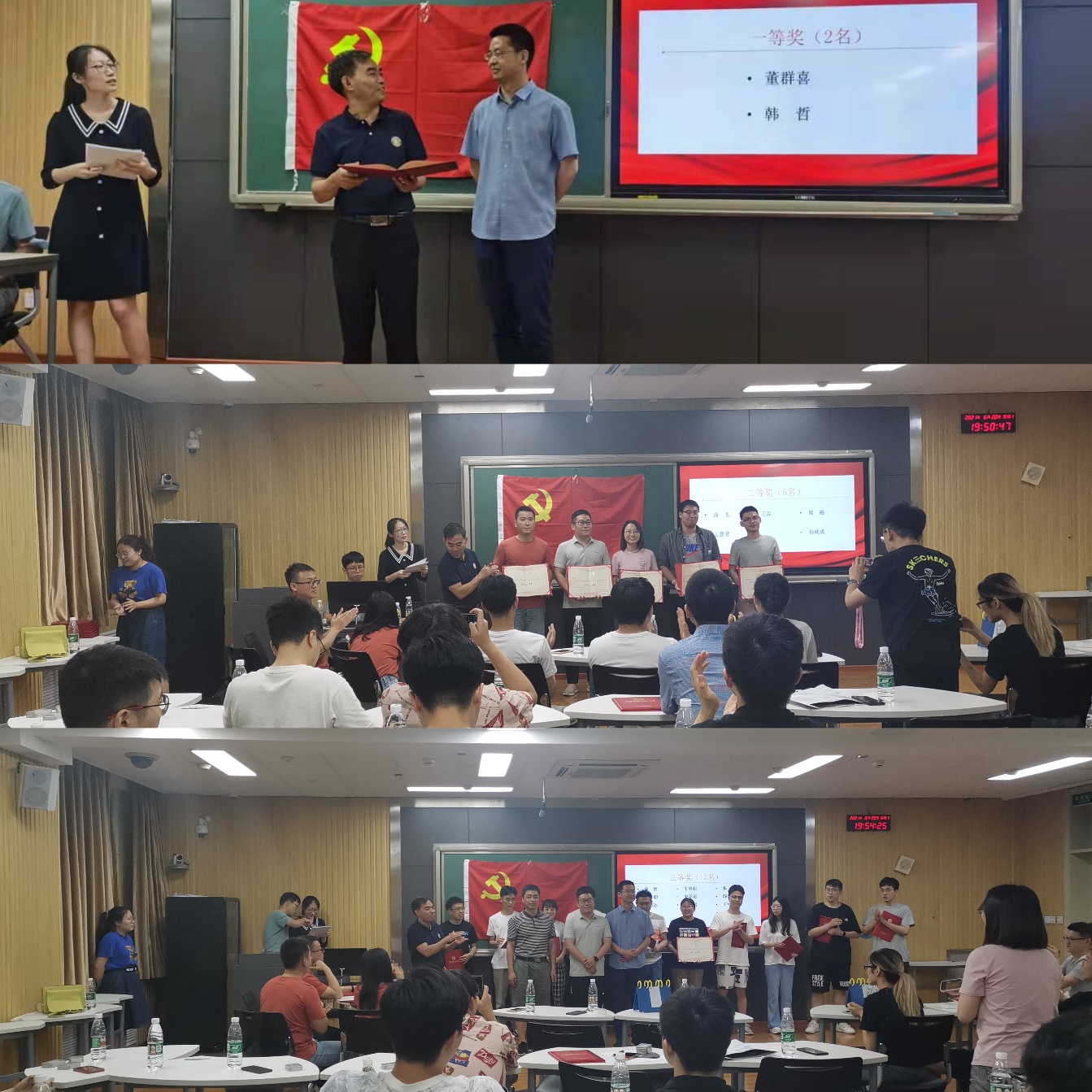 赛后,周勇副院长和研究院青年教师们共同为党史知识竞赛获奖队员及“穿越百年对话”党史学习教育征文获奖同志进行颁奖。周院长寄语全体青年教师和研究生深入学习党史,明白党的先进性,永葆青春的能力,是在社会前进过程中不断革新,不忘初心,牢记使命。希望广大青年学者和学生党员抓住当前大好的研究机遇,同时思想上武装自己,把个人成长和党的伟大事业结合起来,拼搏奋进;通过本次党史学习活动的举办,能够对党自我革新机制内在规律有自己的认识,结合个人成长规划好未来的道路。